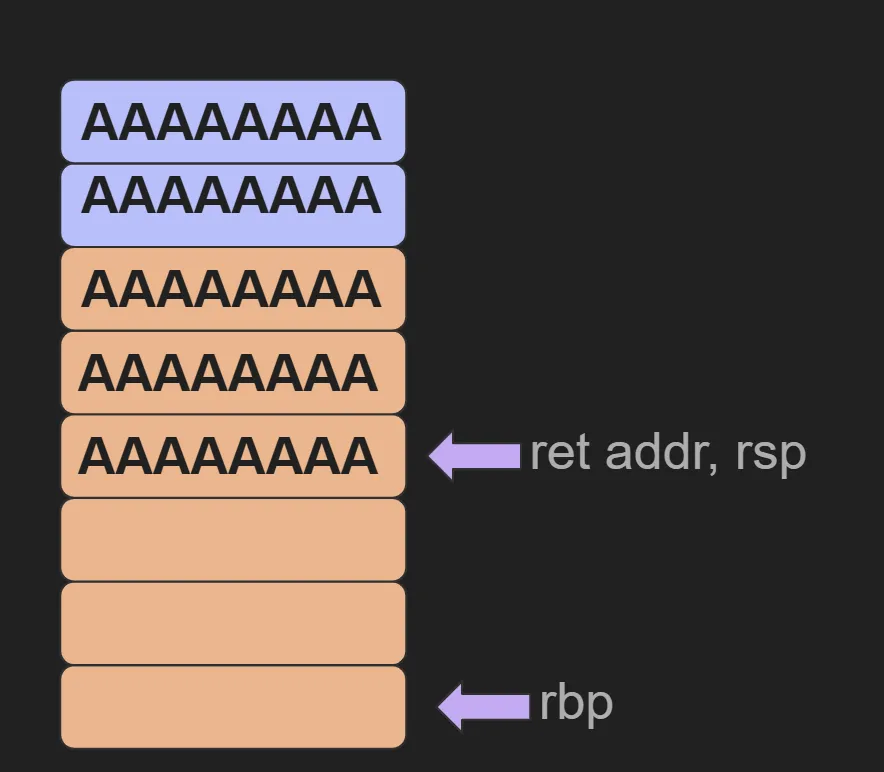 We’ve overwritten the return address! This means that when the function finished executing, it will jump to an invalid address and crash. That is a buffer overflow. Now in this case all the program does is crash but if we craft our payload carefully, we could do more malicious things. However, that is out of scope of this blog post.